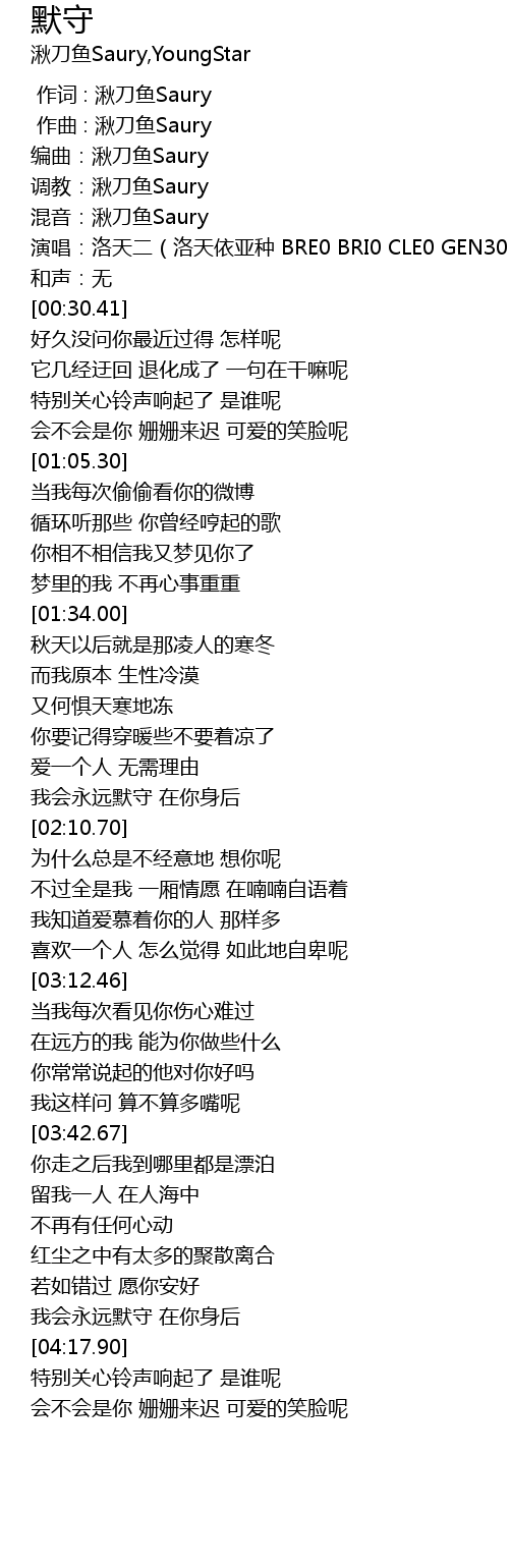 | [00:00.000] | 作词 : 湫刀鱼Saury |