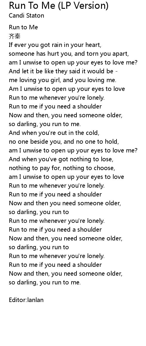| 歌曲 | Run To Me (LP Version) |