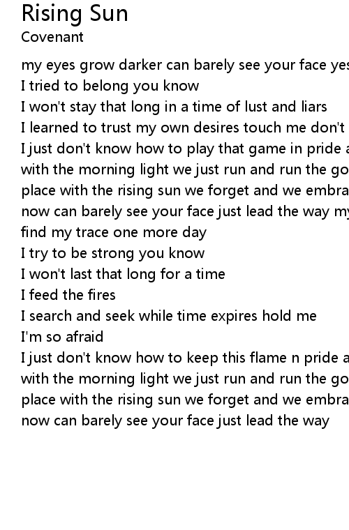 I just don't know how to keep this flame n pride and grace we rise with the sun with the morning light we just run and run the good old days that imaginary place with the rising sun we forget and we embrace my eyes grow darker guide me now can barely see your face just lead the way
