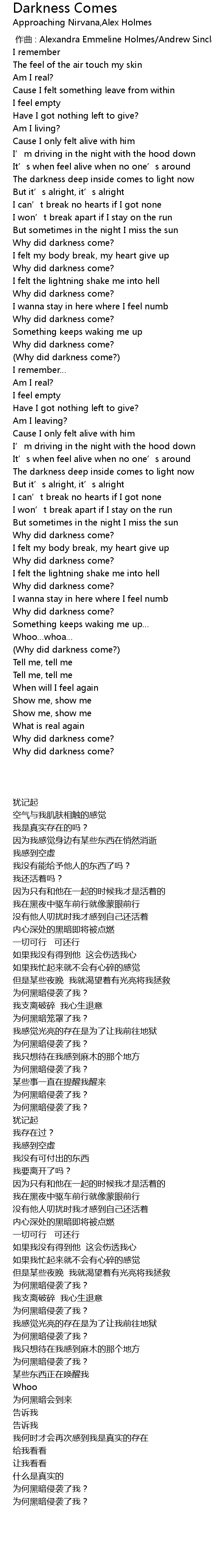 | [00:45.11] | 为何黑暗侵袭了我? |