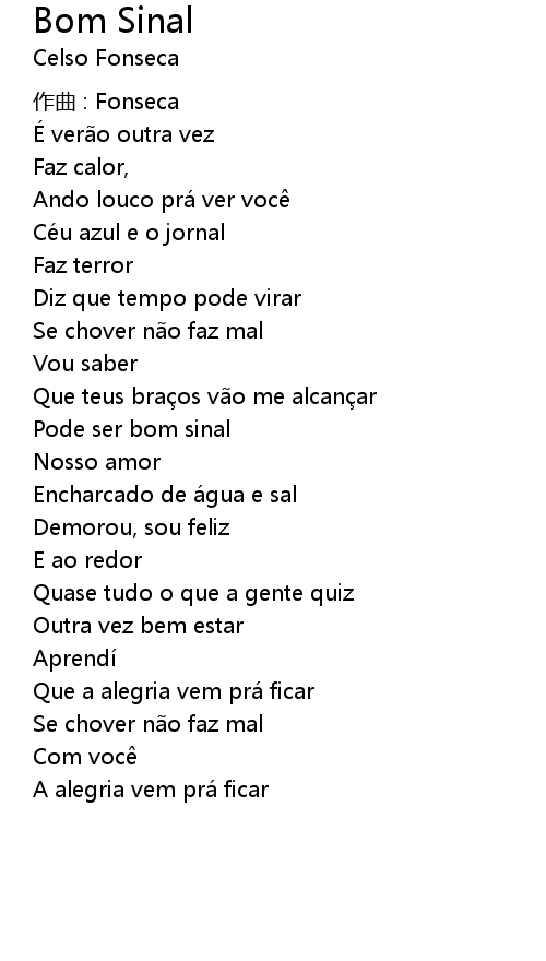 | 歌曲 | Bom Sinal |