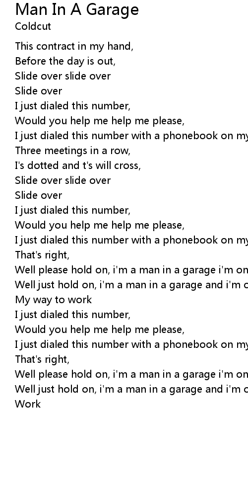 Well please hold on, i'm a man in a garage i'm on my way to work |