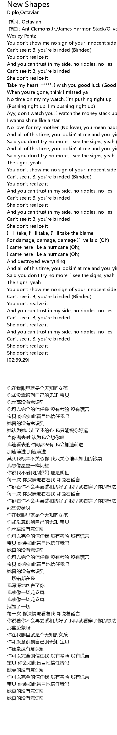 | [02:06.09] | You don't show me no sign of your innocent side (Yeah) |