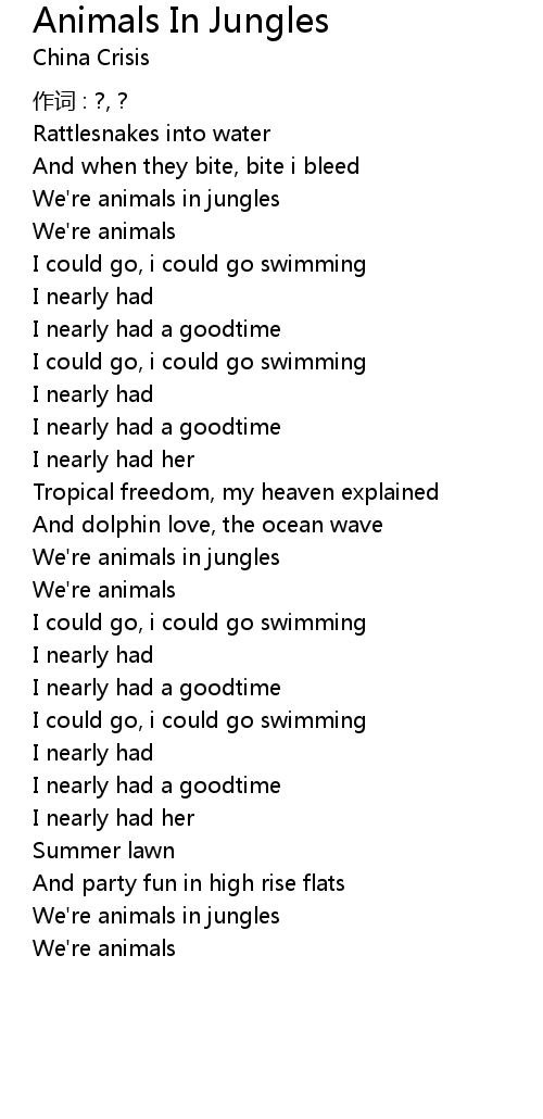 | 歌曲 | Animals In Jungles |