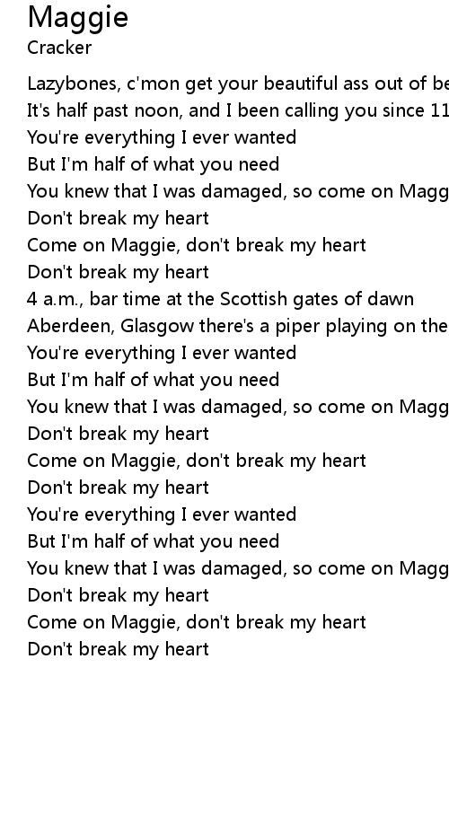 | Come on Maggie, don't break my heart | |