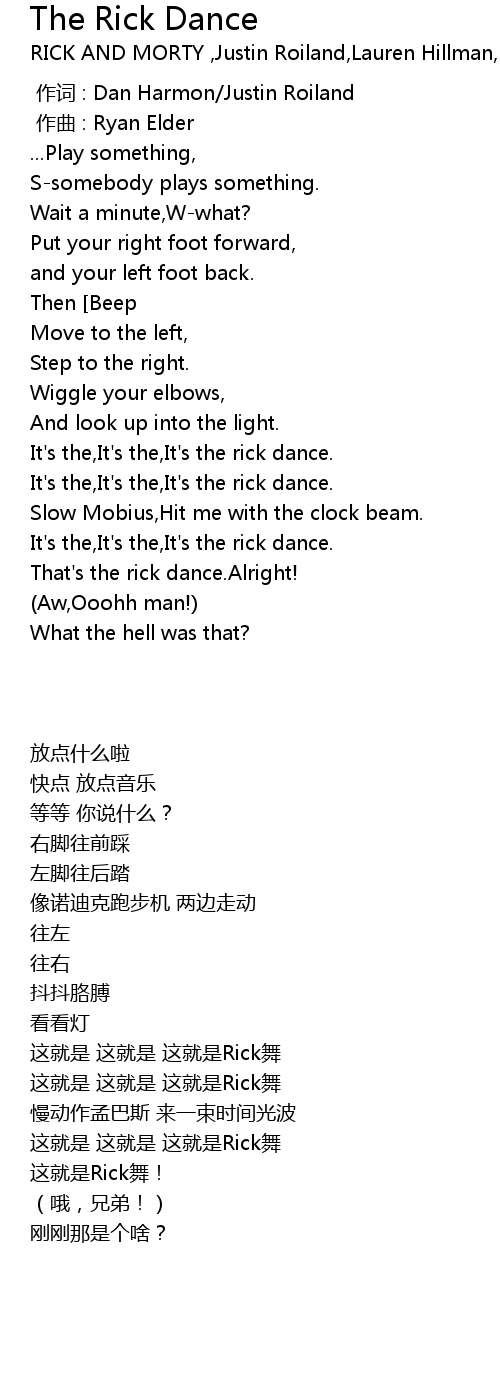 | [00:18] | It's the,It's the,It's the rick dance. |
