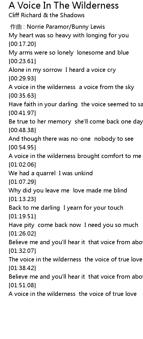 | [01:53.17] | A voice in the wilderness the voice of true love |