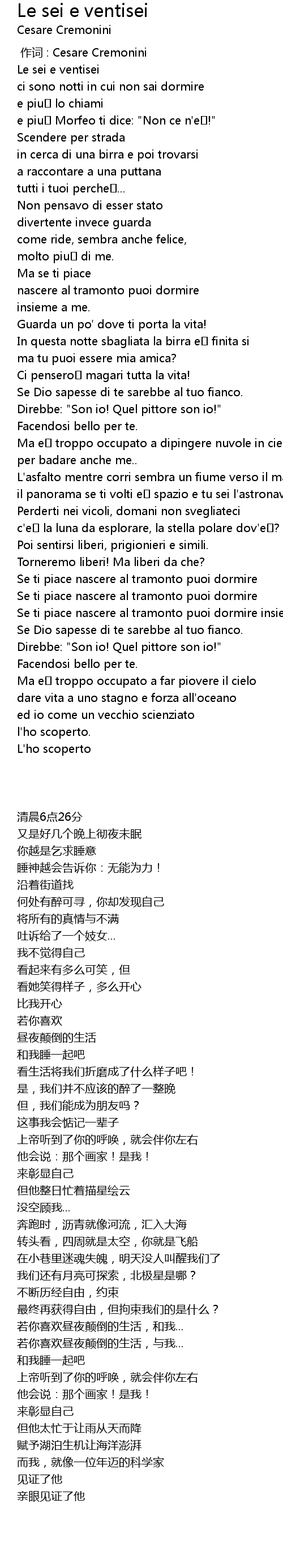 | [00:00.00] | zuò cí : Cesare Cremonini |