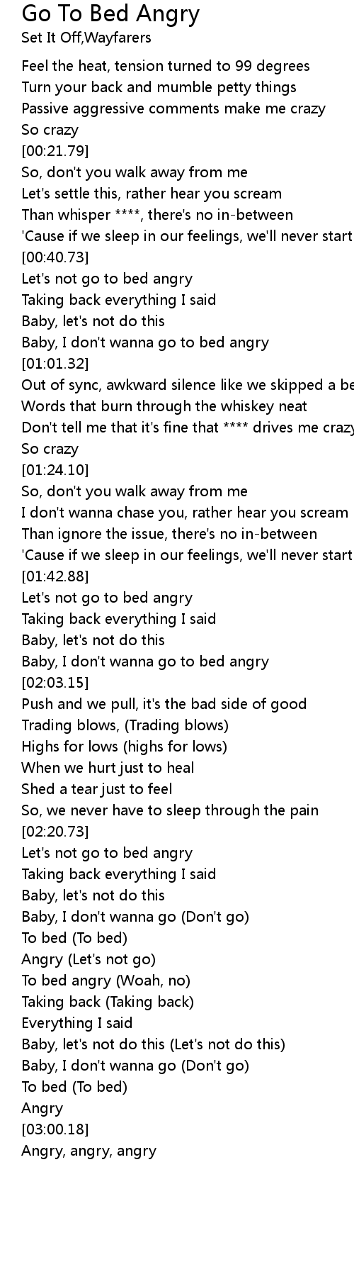 | [02:42.41] | To bed angry (Woah, no) |