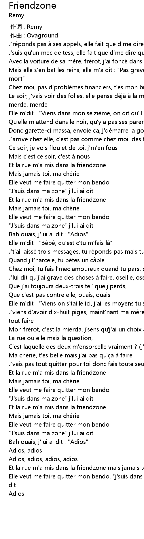 | [00:53.59] | Et la rue m'a mis dans la friendzone |