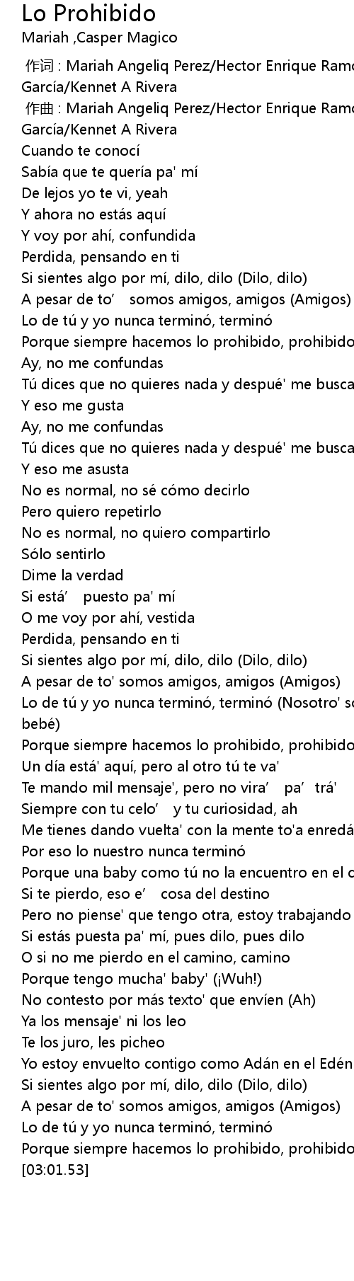 | [00:55.24] | Porque siempre hacemos lo prohibido, prohibido |
