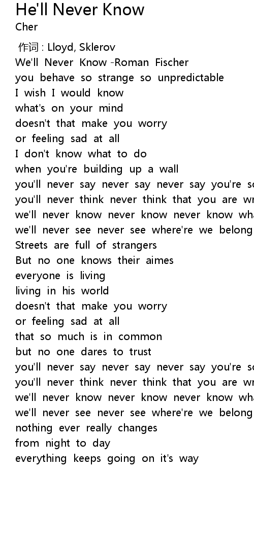| [01:05.26] | we' ll never know never know never know what to go for |