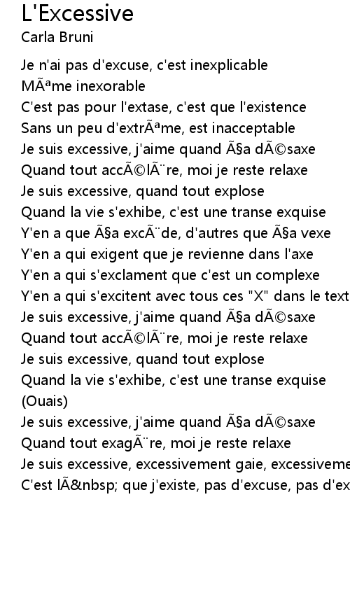 | Je suis excessive, j'aime quand ça désaxe | |