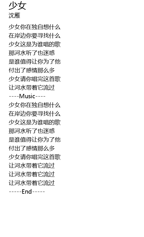 | [00:39.69] | 少女这是为谁唱的歌 |