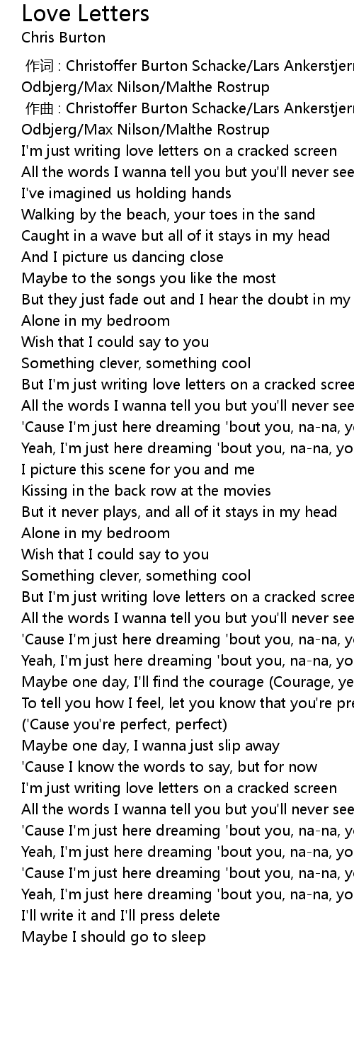| [01:33.23] | But I'm just writing love letters on a cracked screen |