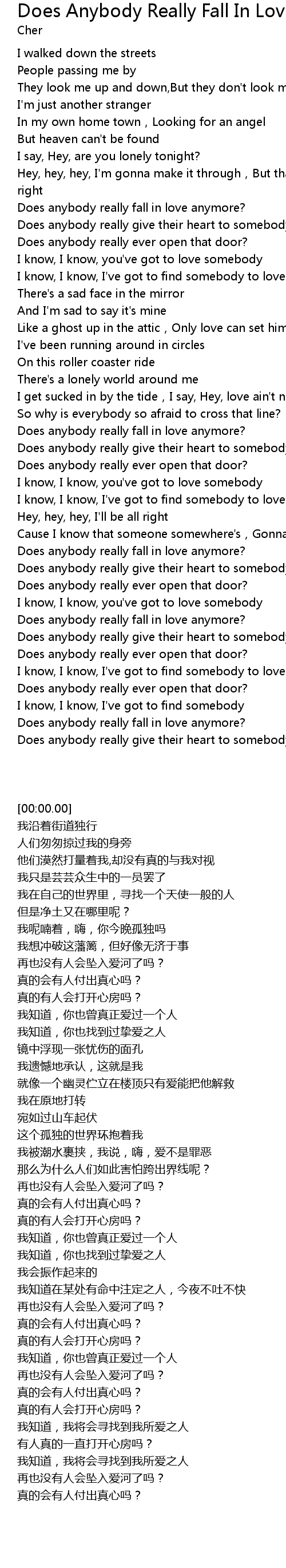 | [04:02.00] | Does anybody really fall in love anymore? |