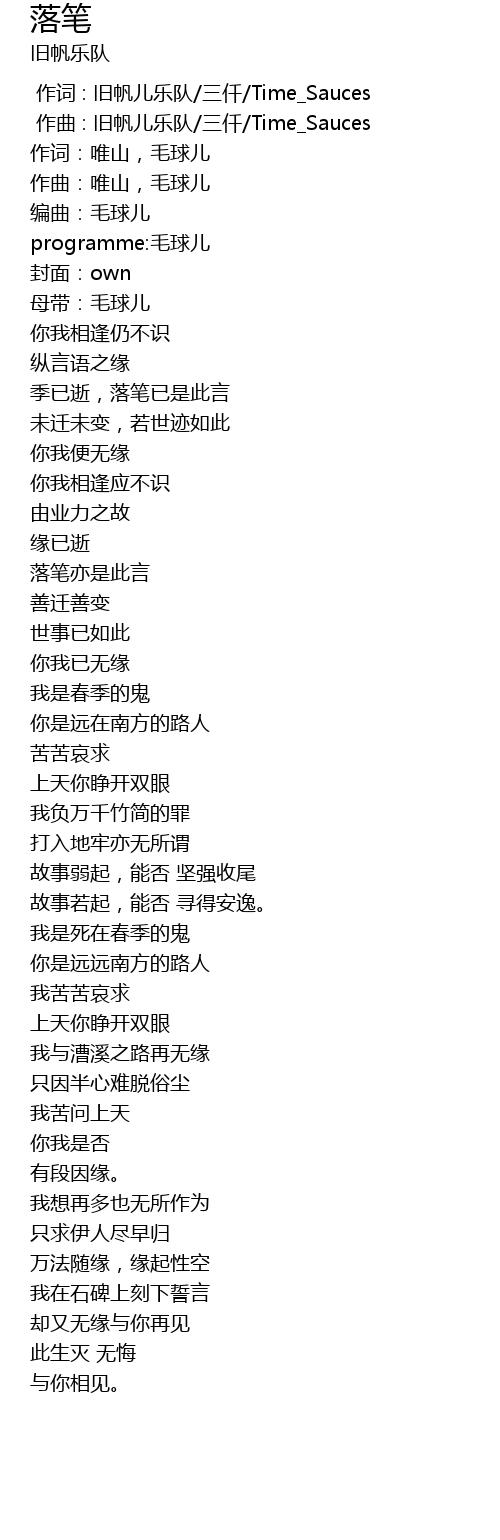 | [00:01.000] | 作曲 : 旧帆儿乐队/三仟/Time_Sauces |