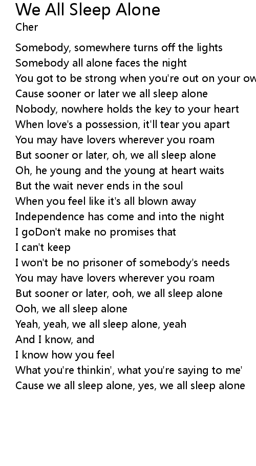 | Cause we all sleep alone, yes, we all sleep alone |
