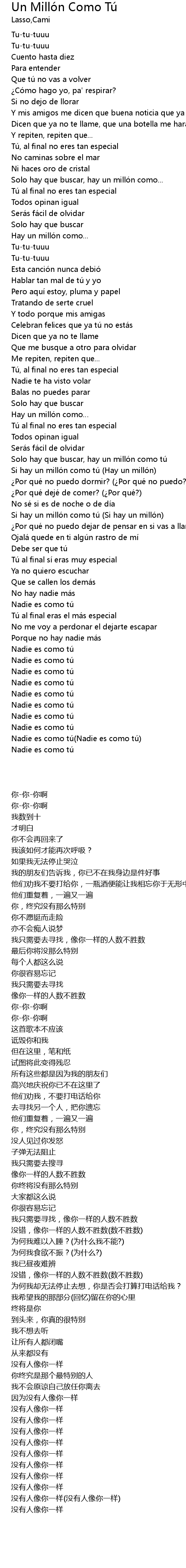 | [02:46.16] | Si hay un millo n como tu Hay un millo n |