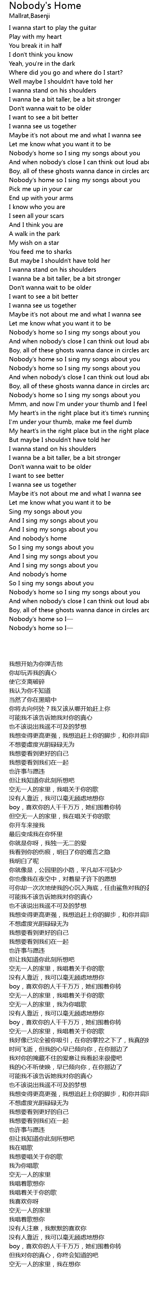 | [03:00.88] | And nobody' s home |