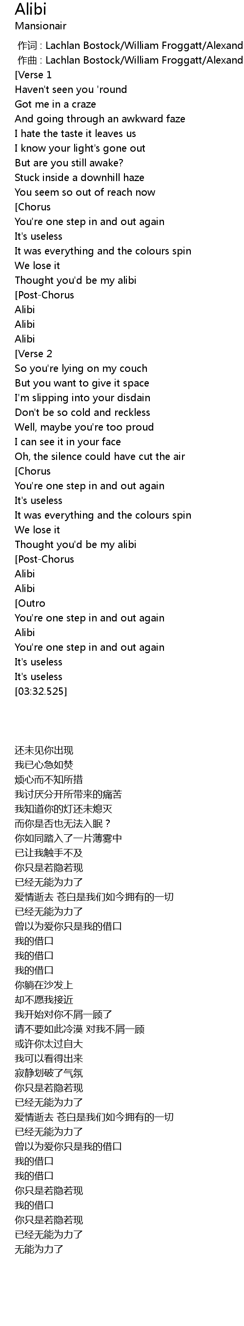 | [03:02.474] | Alibi |