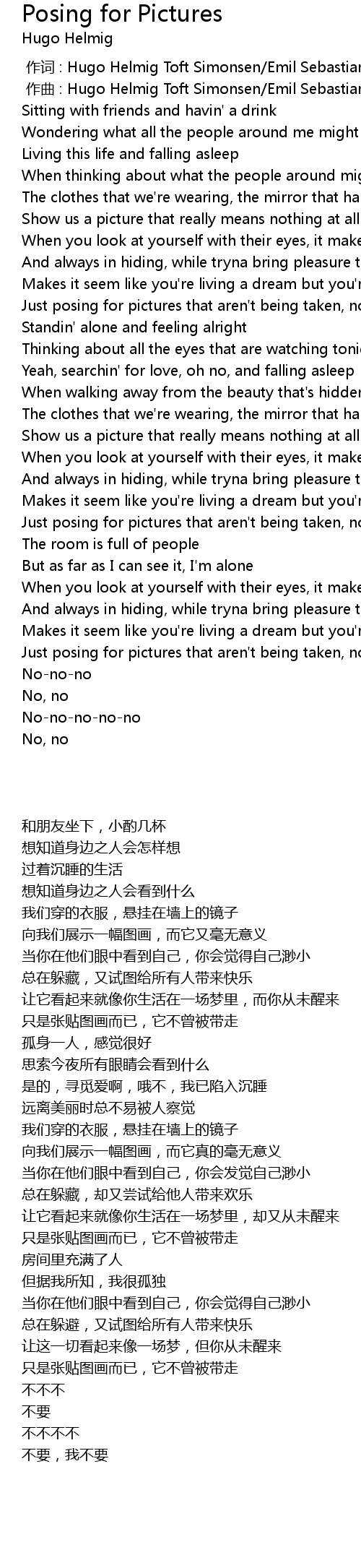| [02:36.200] | Just posing for pictures that aren' t being taken, no, no, no |