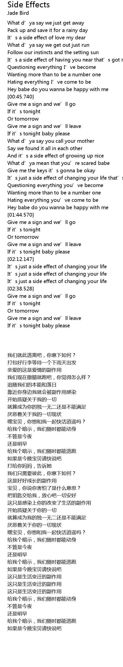 | [01:28.261] | 这只是感染上你的改变了生活的副作用 |
