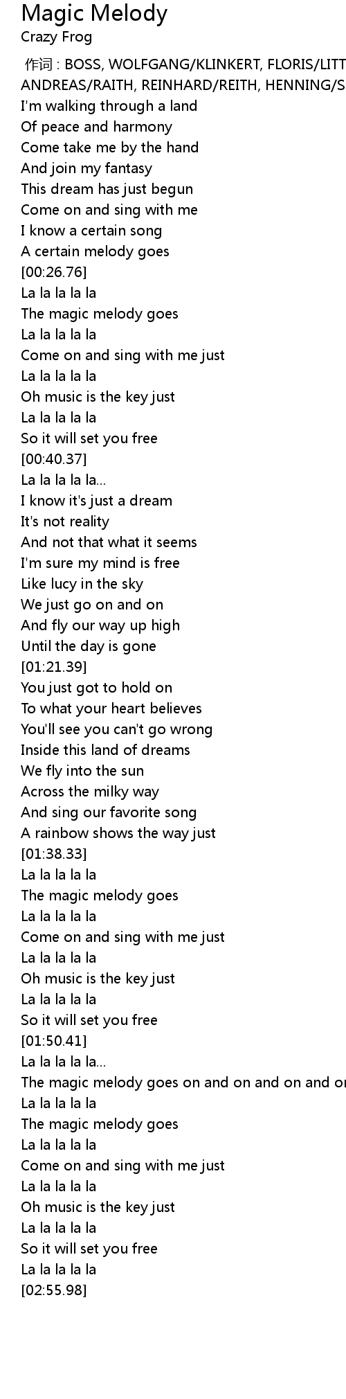 | [02:39.48] | The magic melody goes |