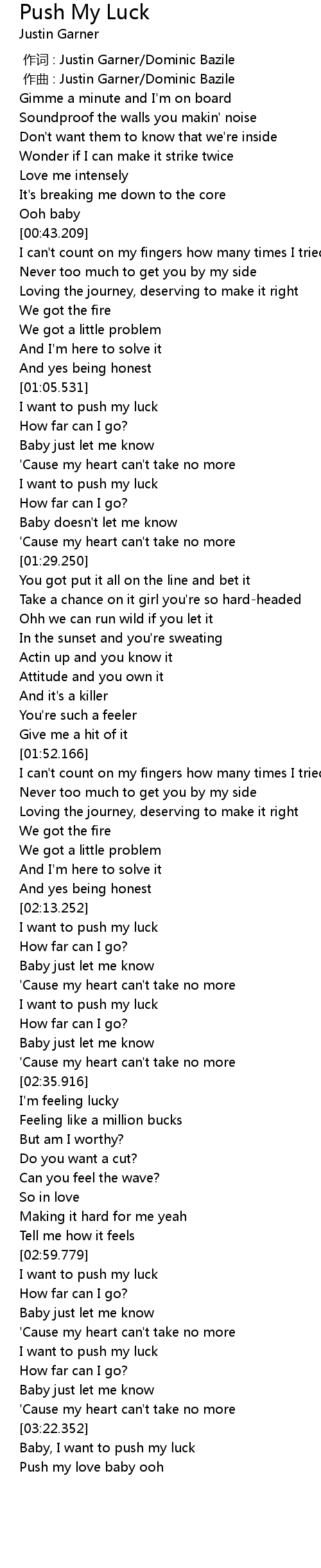 | [00:00.000] | zuò cí : Justin Garner Dominic Bazile |