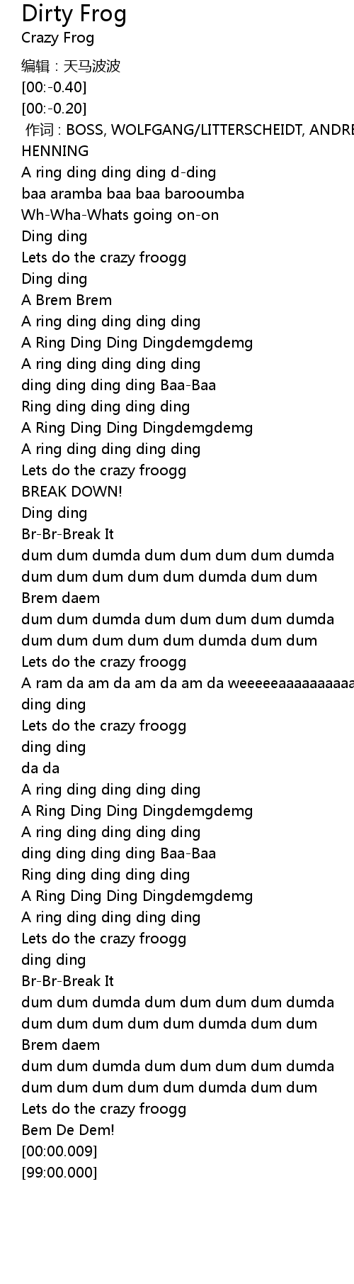 | [01:41.99] | Lets do the crazy froogg |