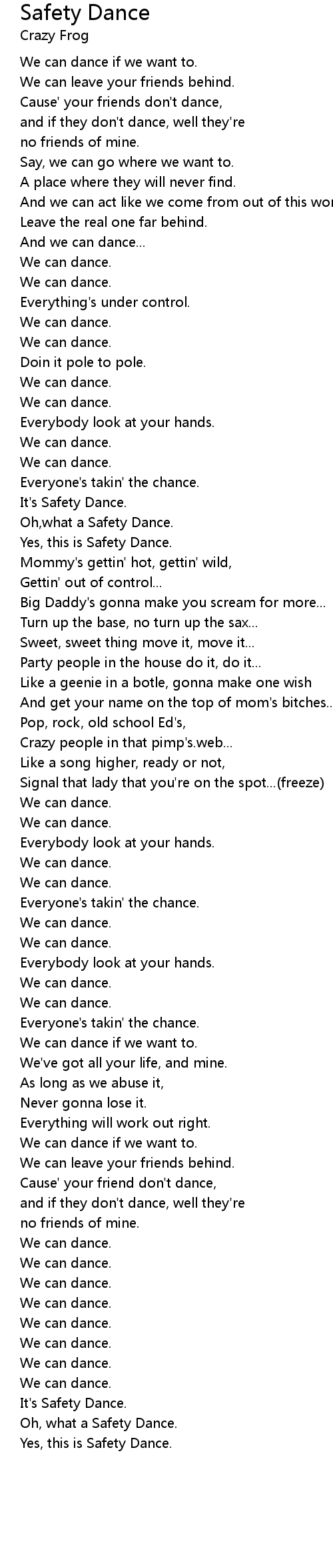 Oh,what a Safety Dance. |