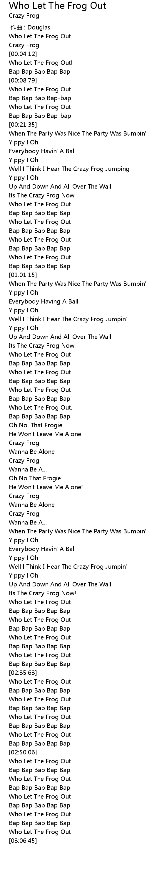 | [03:00.82] | Who Let The Frog Out |