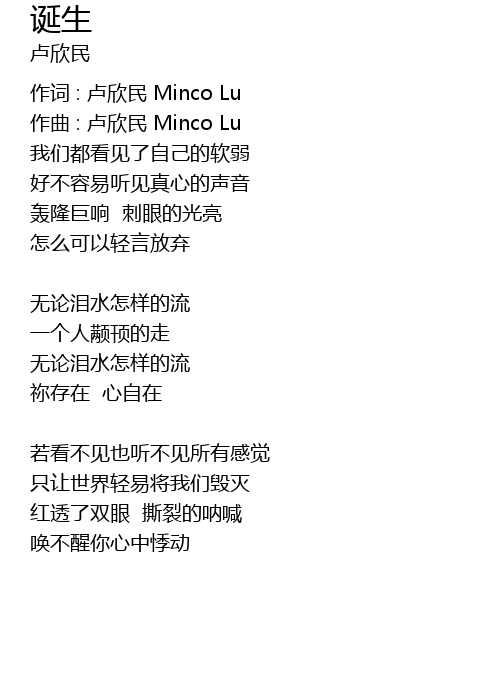 | 作词 : 卢欣民 Minco Lu | |