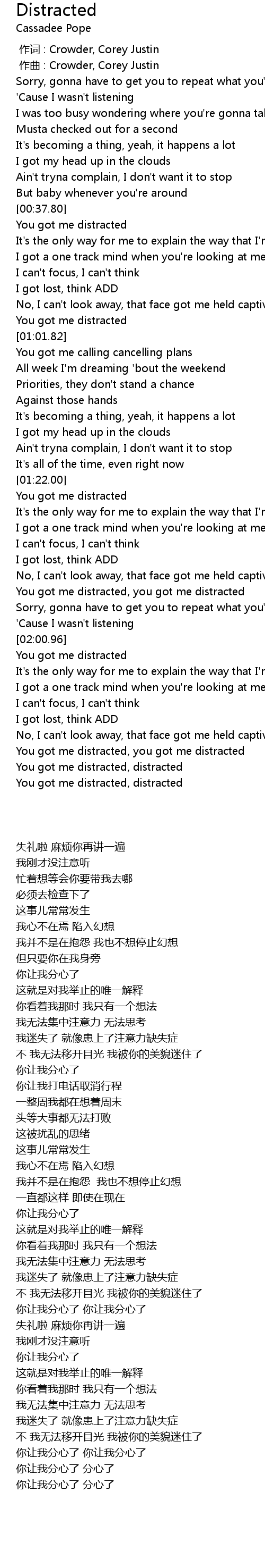 | [02:36.54] | You got me distracted, distracted |