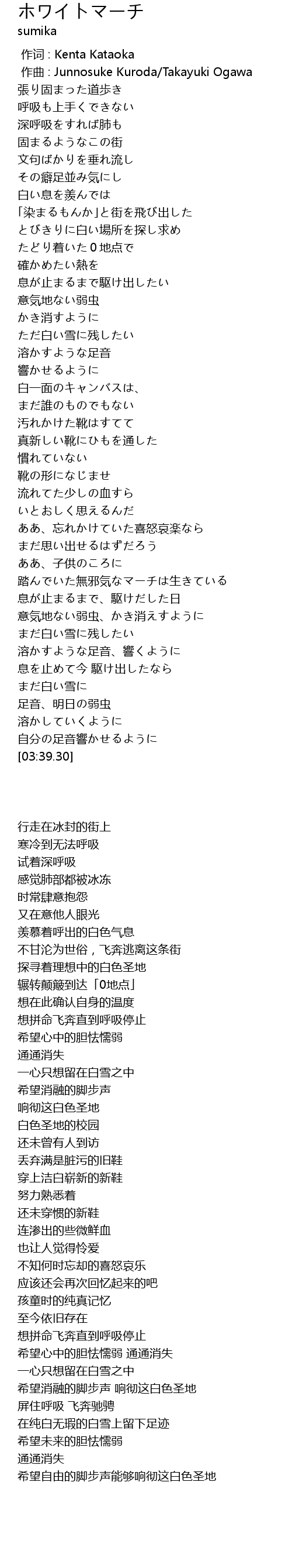 | [00:42.70] | 探寻着理想中的白色圣地 |