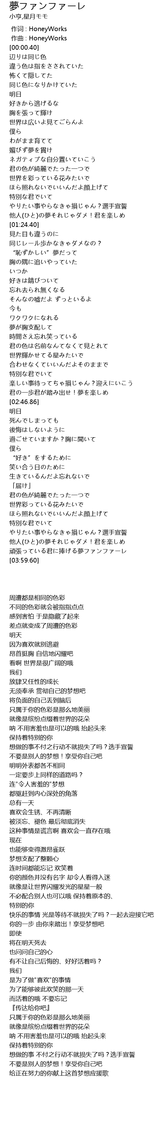 | [03:53.82] | 頑張っている君に捧げる夢ファンファーレ |