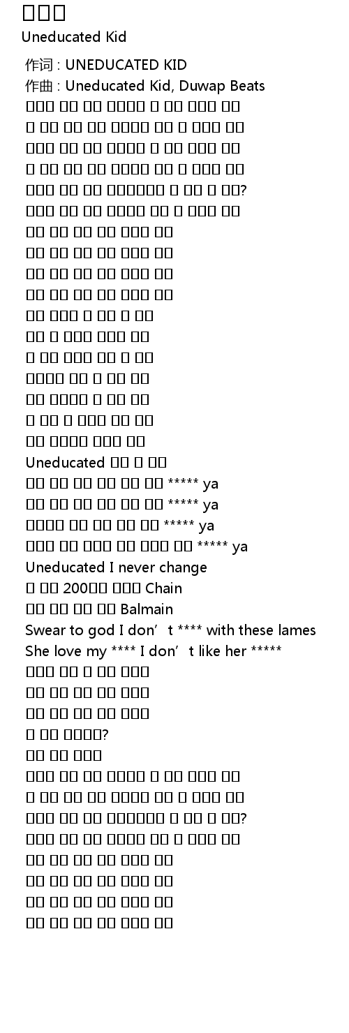 | [00:00.000] | 作词 : UNEDUCATED KID |