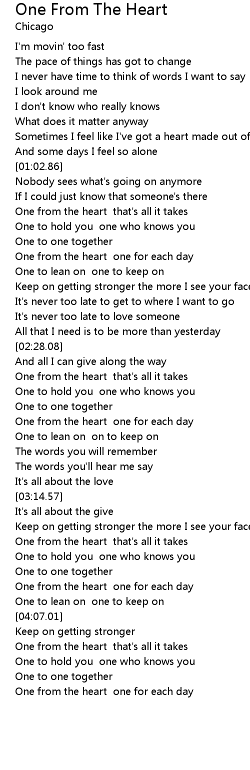 | [00:51.31] | Sometimes I feel like I've got a heart made out of stone |