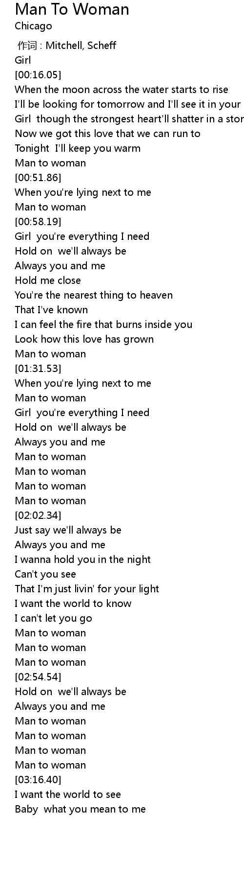 | [00:49.21] | Man to woman |