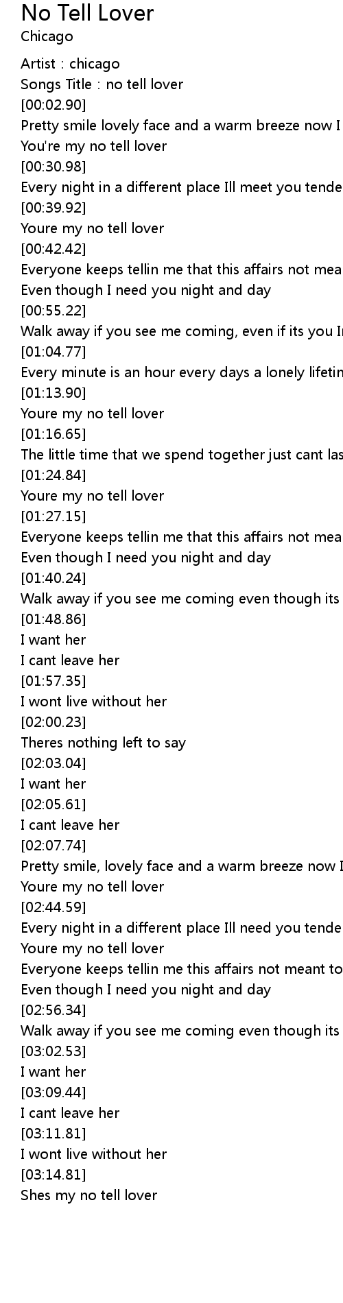 | [02:47.28] | Every night in a different place Ill need you tender lady |