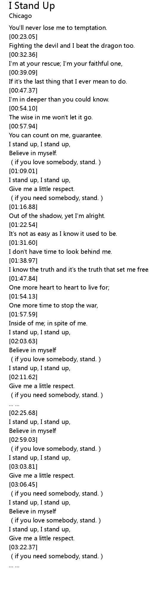 | [03:22.88] | (if you need somebody, stand.) |