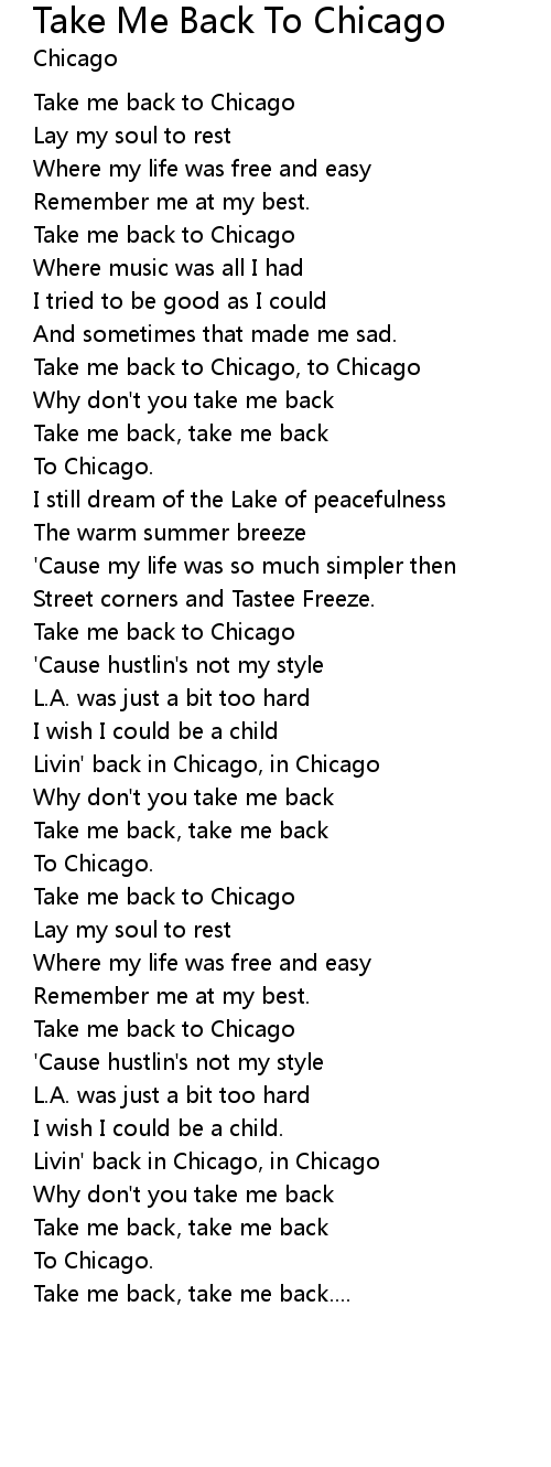 Take me back to Chicago, to Chicago |