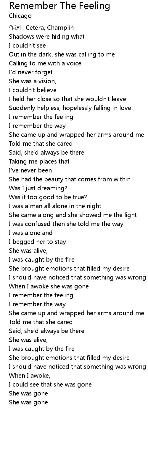 | I remember the feeling | |