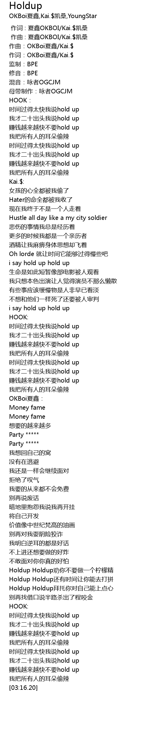 | [03:02.36] | wǒ cái èr shí chū tóu wǒ shuō hold up |