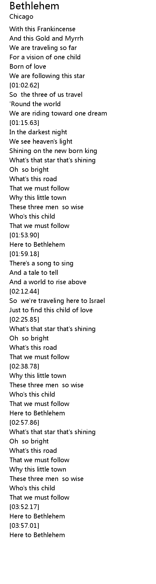 Bethlehem 歌词