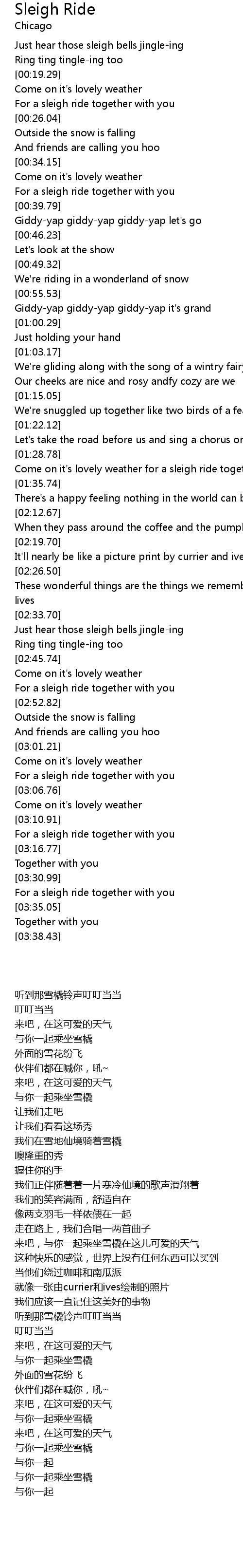 We're gliding along with the song of a wintry fairy land |