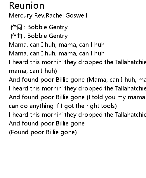 | [00:48.05] | And found poor Billie gone Mama, can I huh, mama, can I huh |
