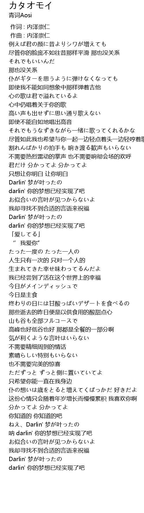| [00:42.634] | Darlin' 梦が叶ったの |