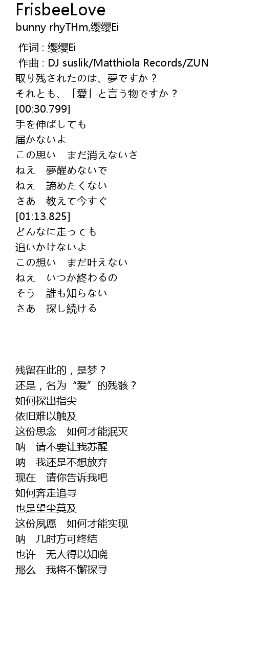 | 歌曲 | FrisbeeLove |