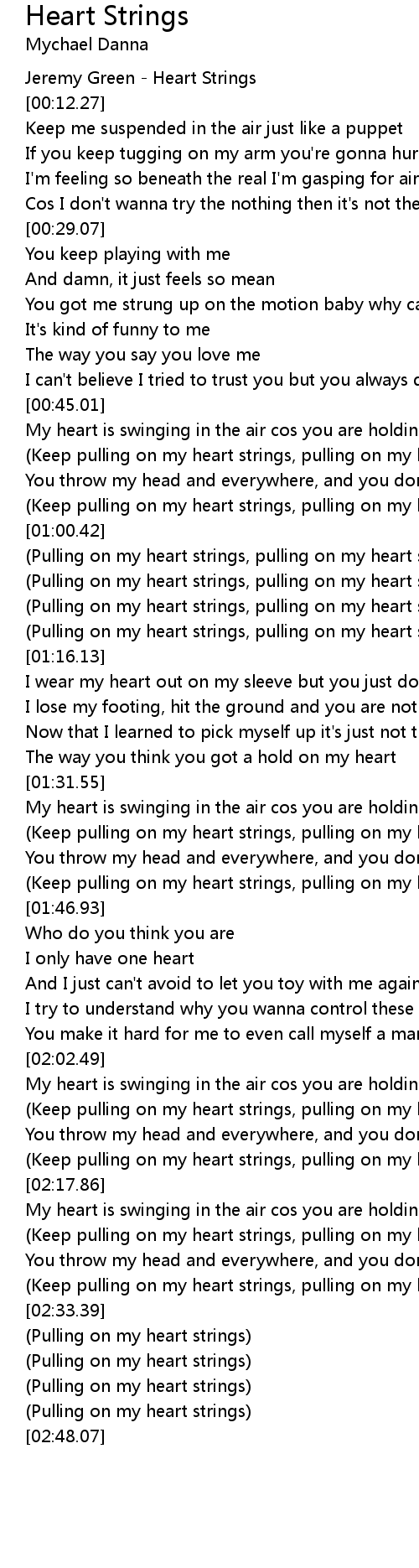 (Keep pulling on my heart strings, pulling on my heart strings) |